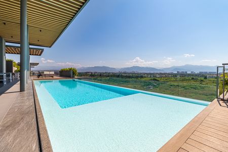 Disfruta de vistas impresionantes desde la hermosa terraza en la azotea, que cuenta con una refrescante piscina—perfecta para descansar al sol. El complejo también ofrece un gimnasio totalmente equipado, una sala de conferencias para cualquier necesidad laboral, y un área de juegos dedicada para los más pequeños.